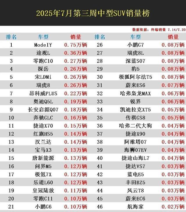有意思的是新车势头猛。长安启源Q07,上市没多久就卖了1900台,硬是挤进了第九名,把过去常在前十的丰田汉兰达都压下去了。这感觉,爽!国产品牌能冲上来,靠的就是性价比和技术升级到位。