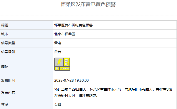 正规股票配资门户网站 怀柔区发布雷电黄色预警